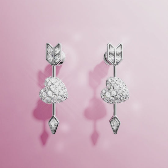 Idyllia Drop Earrings, Mixed Cuts, Heart With Arrow, White, Rhodium Plated