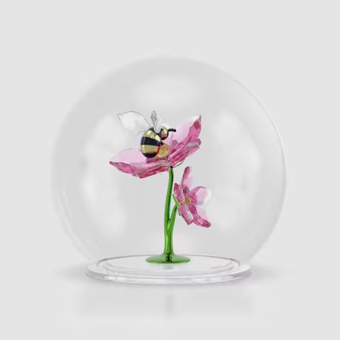 Swarovski’s magical garden is brought to life in this glass ball creation, which reveals a delicate bee resting gently on a blooming flower. Crafted with 220 facets, the design includes delicate pink petals, glossy metal accents and the shimmering wings of the bee, which are enhanced with the Ignite effect. A sweet display of nature that makes a wonderful gift. Decoration object. Not a toy. Not suitable for children under 15.