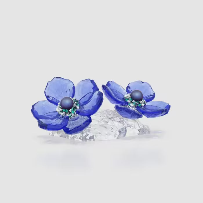 Celebrating the delicate beauty of grounded nature, these sweet anemone blooms can add a botanical touch to your décor. The two flowers are precisely cut with 455 facets and reveal vivid blue petals along with shimmering centres that include iridescent Swarovski Crystal Pearls. Create your own inspired displays by combining this creation with other pieces from the same family. Decoration object. Not a toy. Not suitable for children under 15.