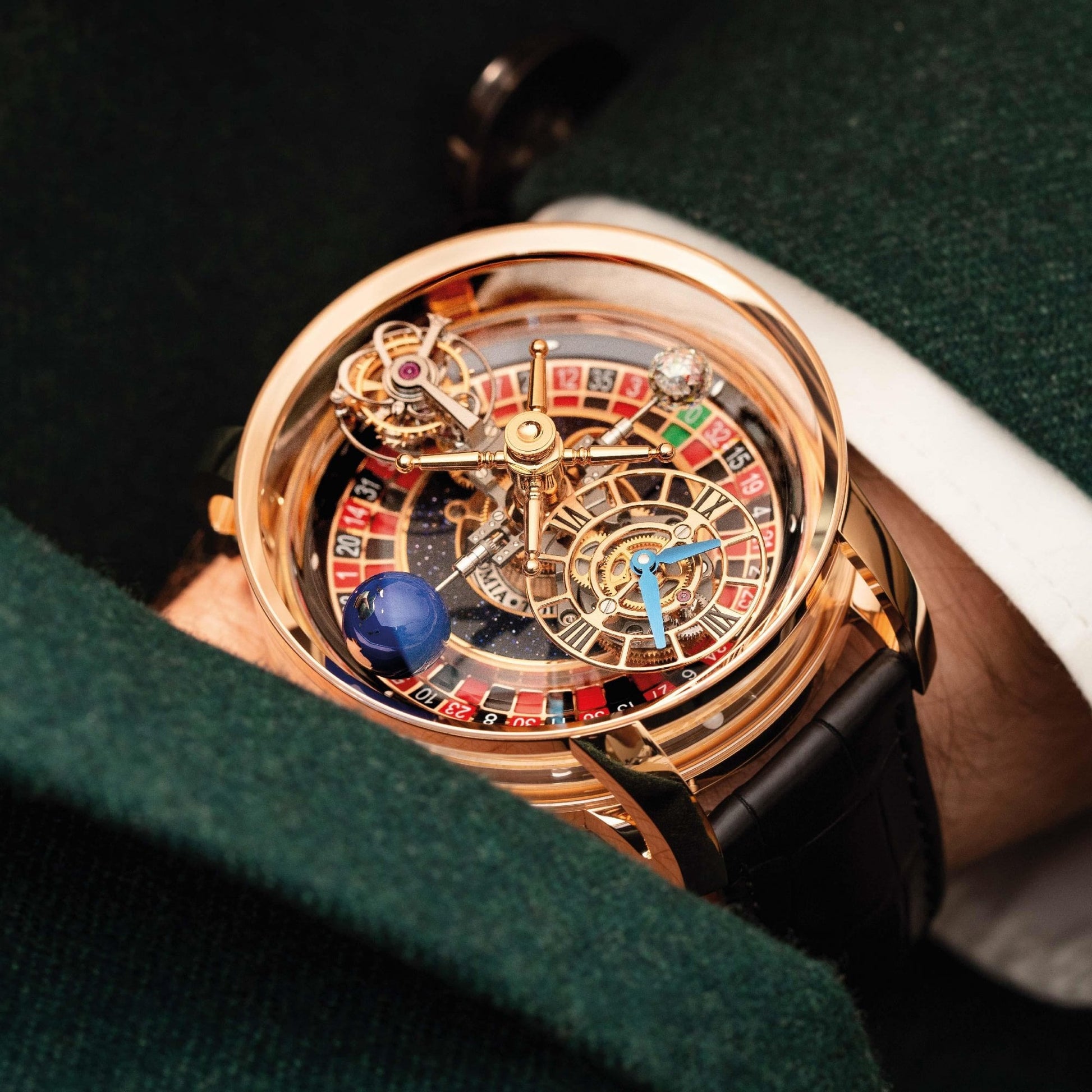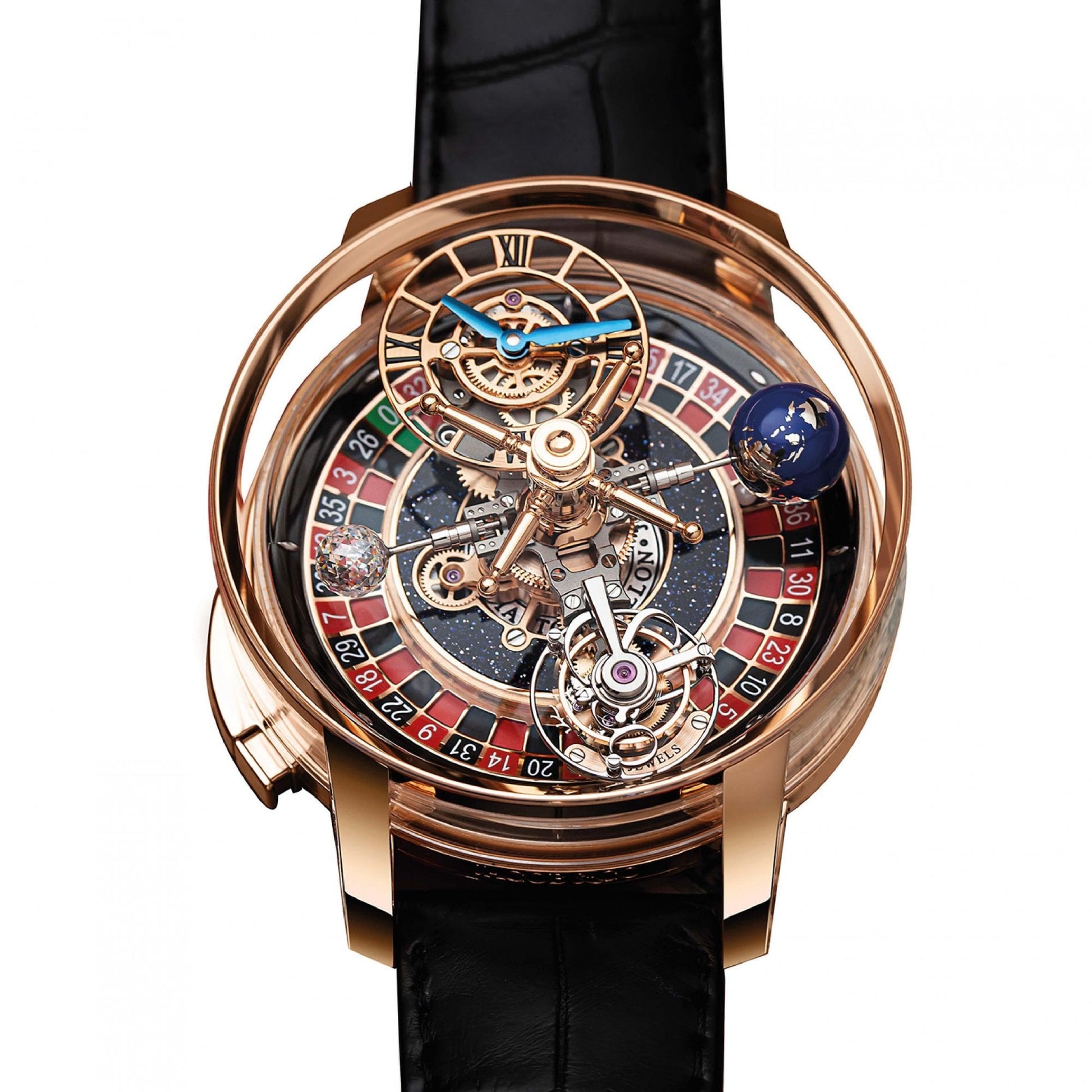 Front Case: 18K Rose Gold Roulette Dial; Lacquer; Ceramic ball;