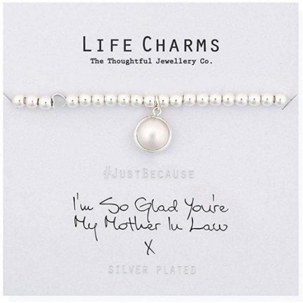 Whether you've been married for 5 years or 5 minutes, this beautiful silver plated bracelet with fresh water pearl charm is the perfect gift for your mother in law: let her know what she means to you. Fresh water pearl with silver plated band charm, p
