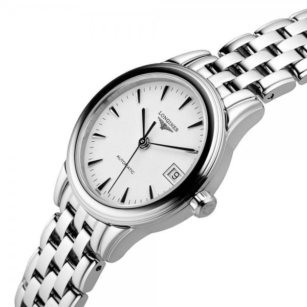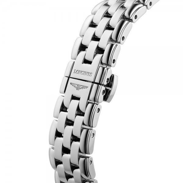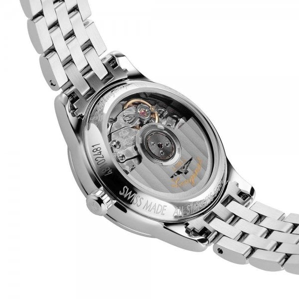 Designed with a timeless sense of style that will go with anything, this striking Longines La Grande Classique automatic ladies watch showcases the oldest aesthetic tradition of this elegant Swiss brand. Fastened with an elegant and vintage-inspired stainless steel bracelet with triple folding security clasp and push-piece opening mechanism, the 26mm stainless steel case features a transparent case back and is finished with a refined polished bezel which confirms its contemporary style. Beneath the scratch-resistant sapphire crystal, the white dial features applied baton hour markers, date window at 3 o'clock and delicate black hands.