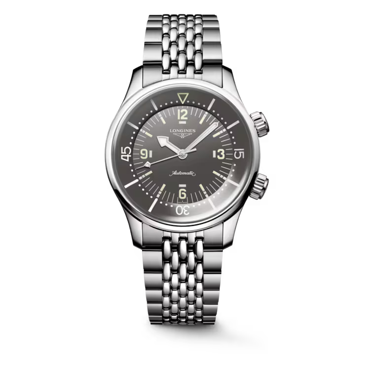 Originally designed for underwater exploration, the Longines Legend Diver is equally at home on land or underwater. With its timeless design and cutting-edge performance, it has been a true icon of watchmaking since 1959. At first glance, it is distinctive because of its two crowns and internal rotating bezel. Invented by Longines, the position of the bezel inside the case protects it from accidental manipulation and shocks that could alter its settings. These true tool watches are powered by exclusive Longines calibres equipped with a silicon balance-spring. The collection is available in a range of sizes, materials and colours.