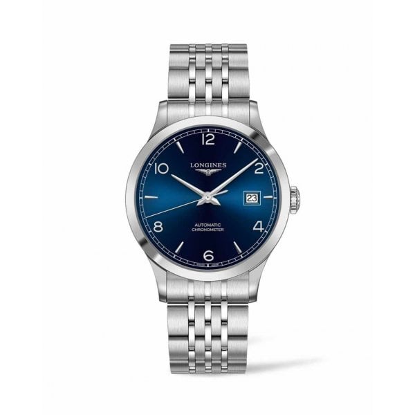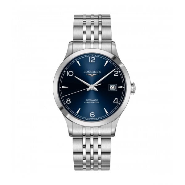 Classic elegance and modern excellence collide for this beautifully made Longines record automatic men's watch. This carefully made Swiss watch is presented on a stainless steel bracelet and features a 40mm stainless steel case with a polished bezel. Scratch-resistant sapphire crystal with several layers of anti-reflective coating on the underside protects the sunray blue dial that's enhanced by baton and Arabic numeral hour markers, and a date window at 3 o'clock. Water resistant to 30m, this Longines watch is powered by an automatic movement with a 64 hour power reserve. Chronometer certified by COSC, this Longines watch has passed several rigorous tests to prove its strength and reliability