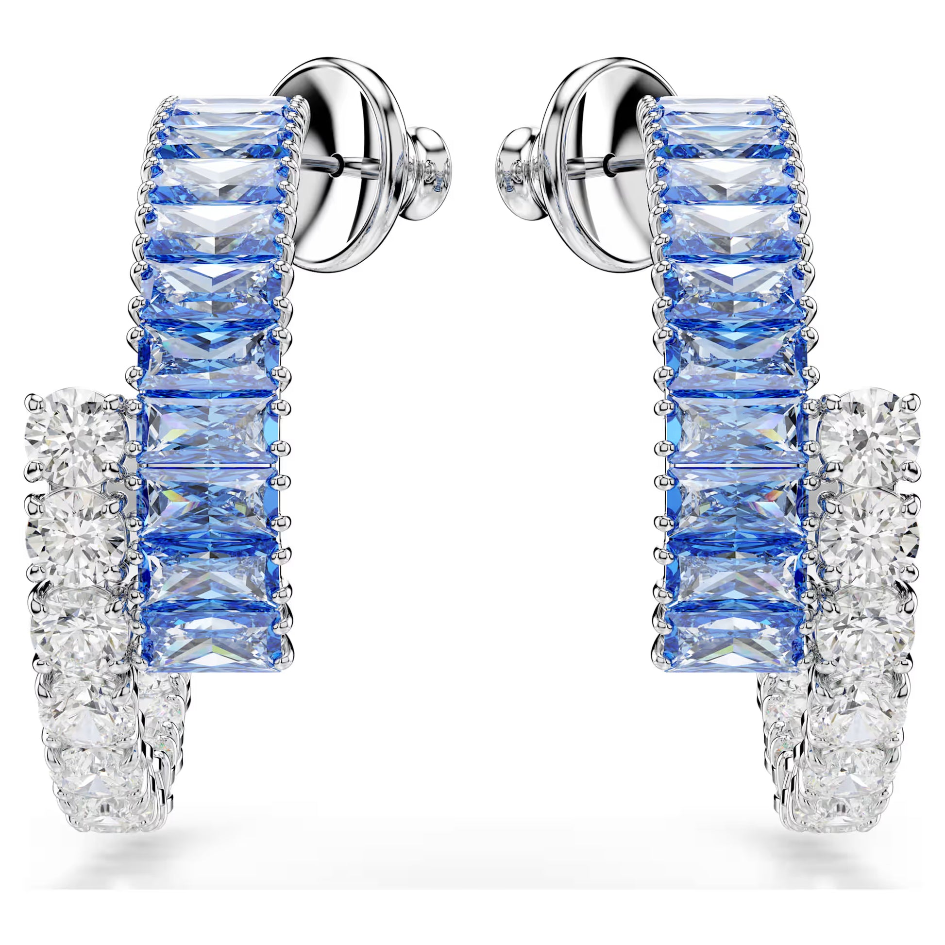 Matrix Hoop Earrings, Mixed Cuts, Blue, Rhodium Plated