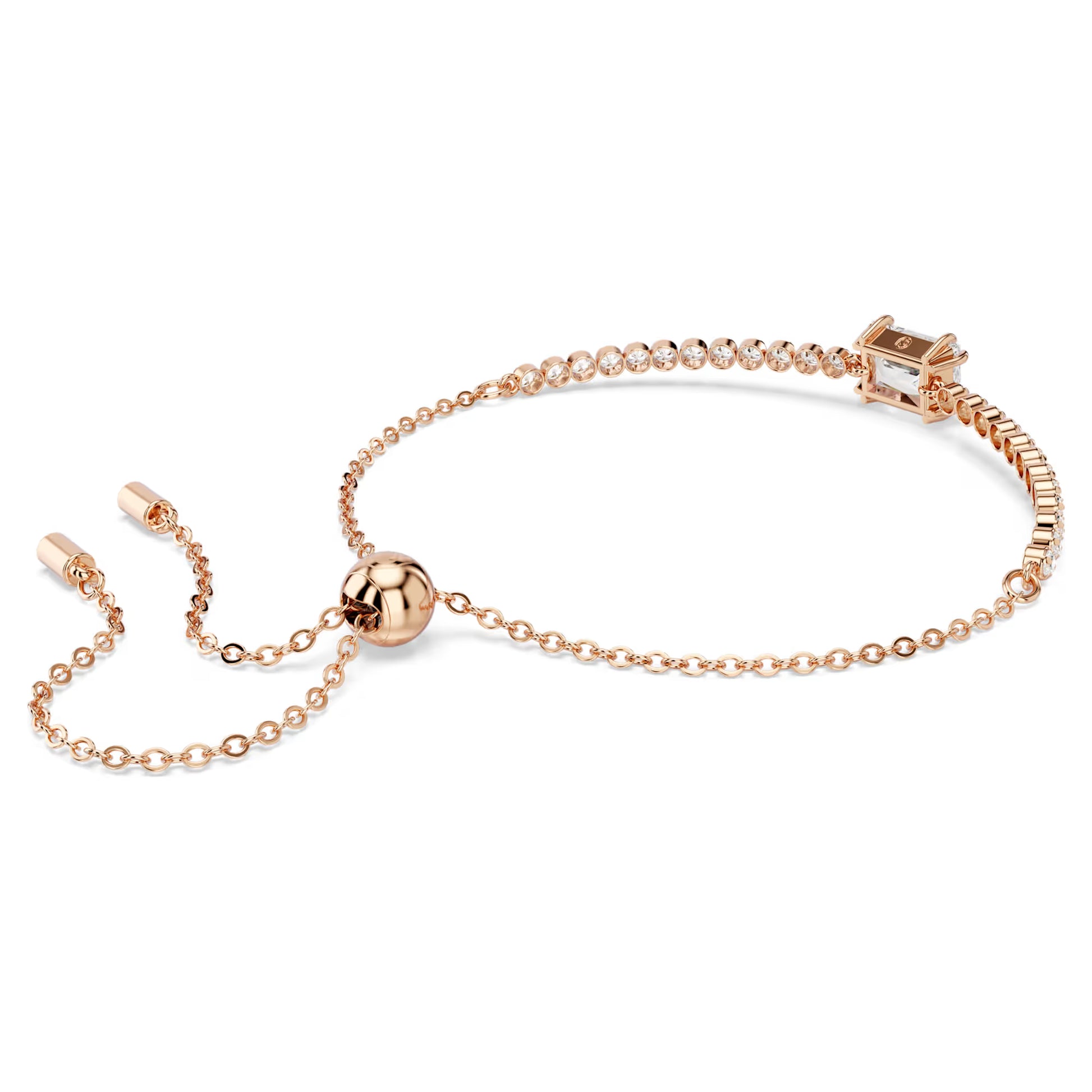 This classic Tennis bracelet adds a touch of radiance to any look. Fastened with a sliding closure for an adjustable fit, the rose gold-tone plated design features a uniform row of Swarovski Zirconia and is accented with a baguette-cut Swarovski Zirconia at its centre. A vibrant twist on a timeless style that you can wear time and time again.