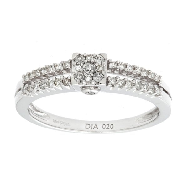 0.20 Diamond, 9k White Gold Ring Size P