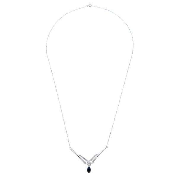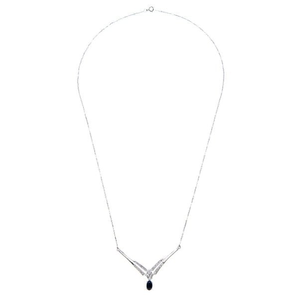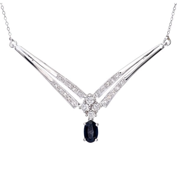 WEIGHT: 2.9G CHAIN LENGTH: 17 DIAMOND QTY: 24 DIAMOND WEIGHT: 0.24 GEMSTONE: SAPPHIRE GEM WEIGHT: 0.65