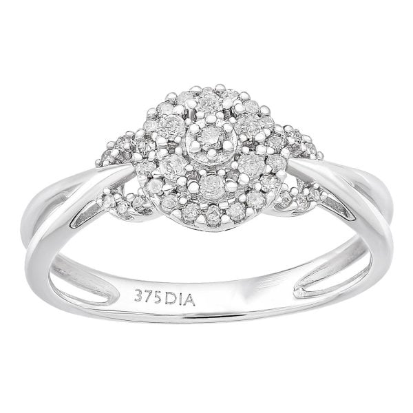 9ct White Gold 0.25ct Diamond Halo Ring Size O