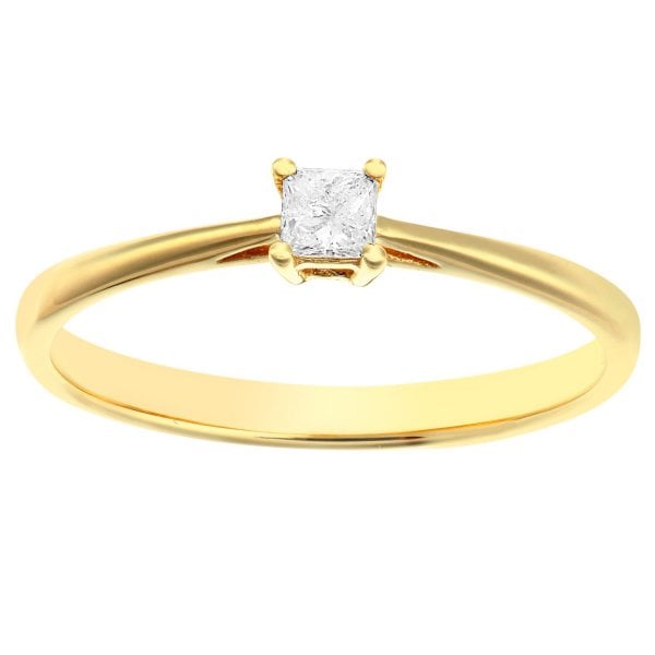 9ct Yellow Gold Ring, Princess Cut Diamond 0.10ct