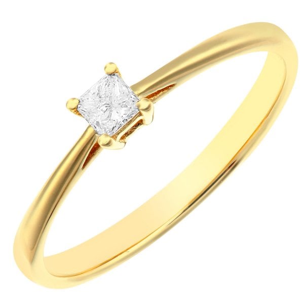 9ct Yellow Gold Engagement Ring, Princess Cut Diamond, 0.10ct