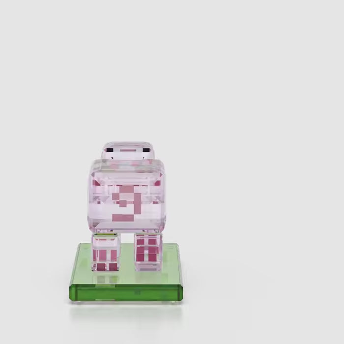 Swarovski and Minecraft have teamed up to bring the whimsical charm of the Overworld to life. Inspired by one of the cutest mobs, this Pig figurine is made from full-cut crystals to replicate Minecraft’s iconic blocky style. The beloved pig is the perfect companion: adorable and happy to give players a ride, if tempted with a carrot on a stick. The figurine features 308 facets as well as the pig’s signature, irresistible eyes. Gift it to the Minecraft players in your life so they can always have a blocky friend by their side. The pig can also be paired with the other characters from the Swarovski Minecraft collection. Decoration object. Not a toy. Not suitable for children under 15.