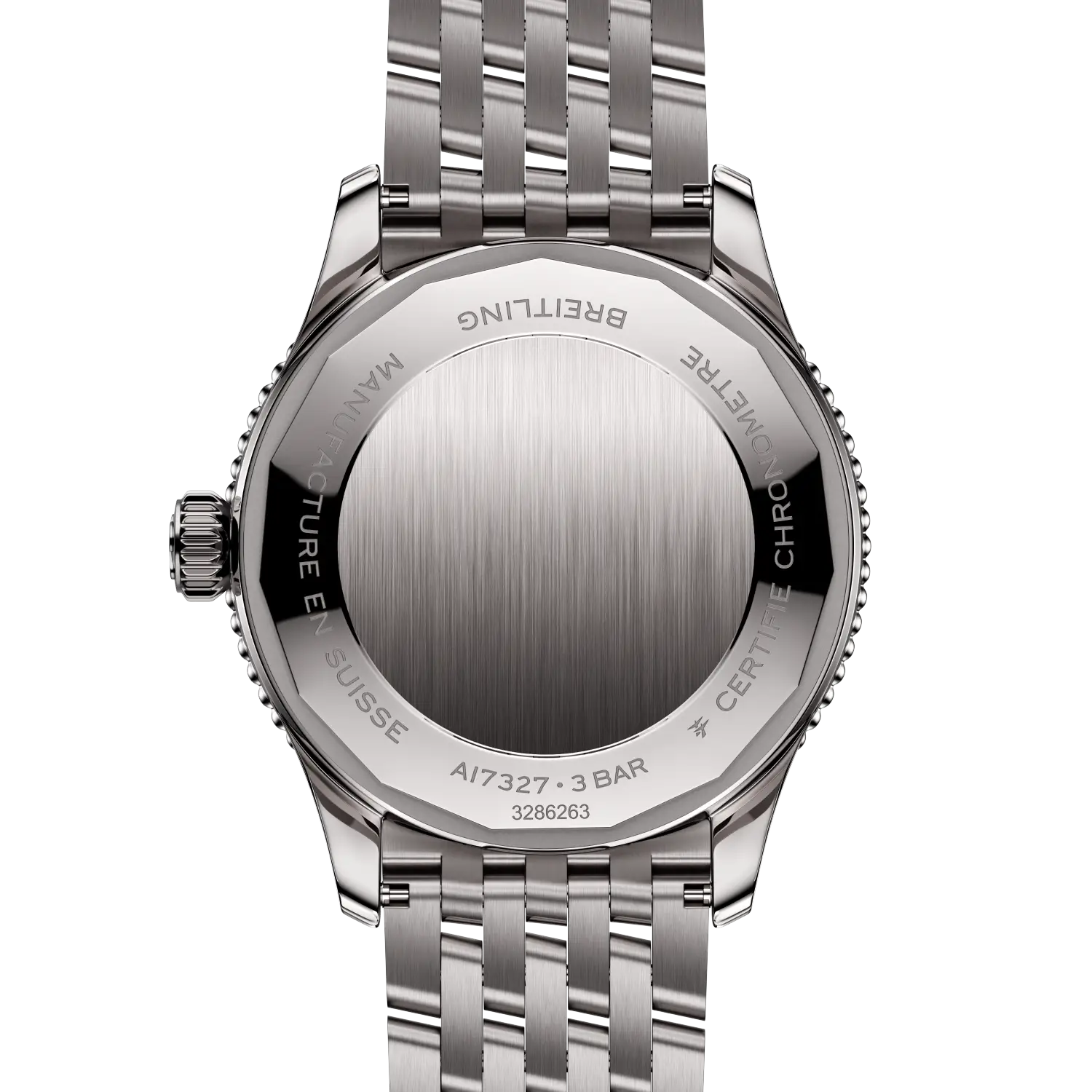 Powering the watch is the Breitling Calibre 17 (automatic), offering approximately 38 hours of power reserve. With a water resistance of 30 m (3 bar), it is well suited to everyday wear while retaining its elegant profile