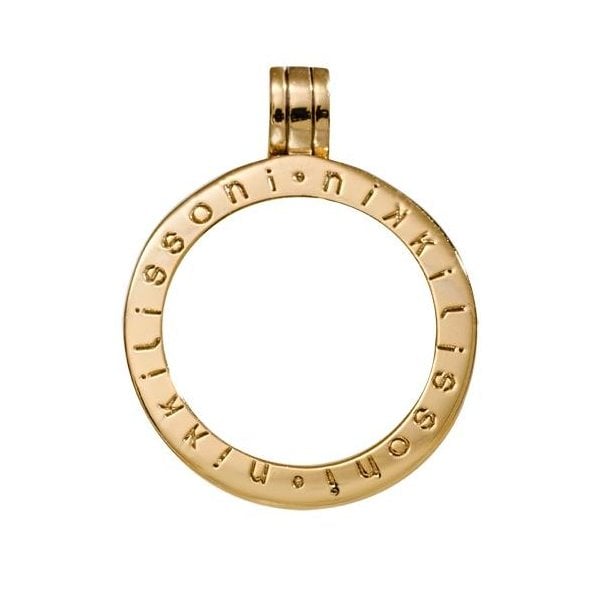 The Nikki Lissoni P02GM is a 'medium gold plated pendant' designed to hold a medium coin. Nikki Lissoni is the only interchangeable pendant brand which allows the coin to be swapped while it is being worn.
