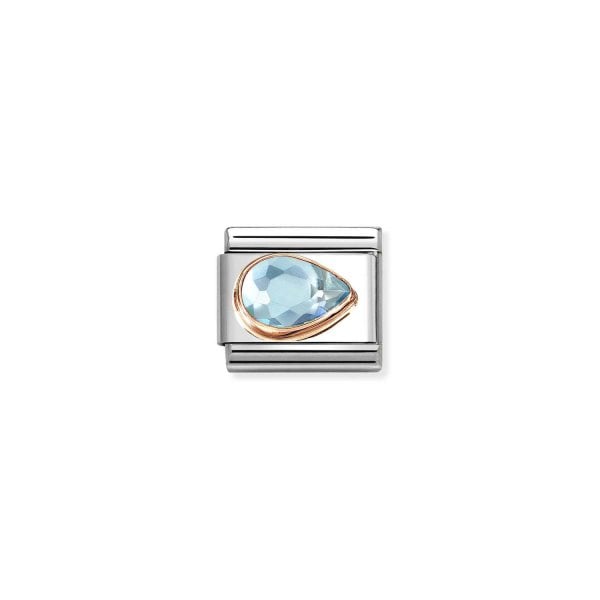 Composable Classic CZ. FACETED RIGHT DROP in steel and bonded rose gold LIGHT BLUE