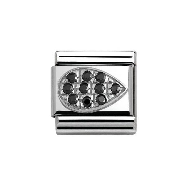 Classic Drop Black Pave In Steel, Cub. Zirconia & 925 Silver Charm