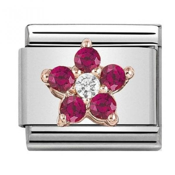 Classic Rose Gold Red And White Cz Flower Charm