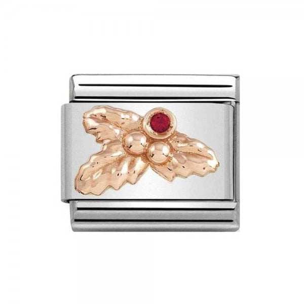 Classic Rose Gold Red Zirconia Holly Leaves Charm