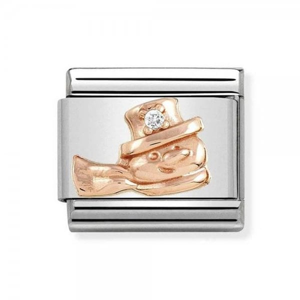 Original Nomination Link for Composable Classic Bracelets 9ct Rose Gold Raised Snowman with White CZ.