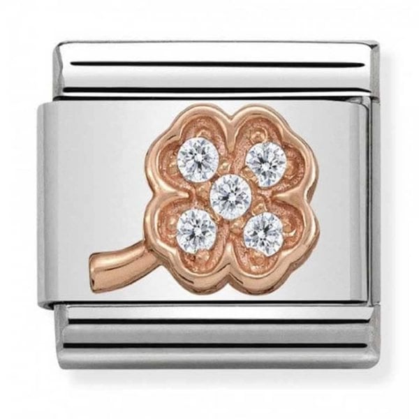 Original Nomination Link for Composable Classic Bracelets in stainless steel with 9ct Rose Gold Clover charm.