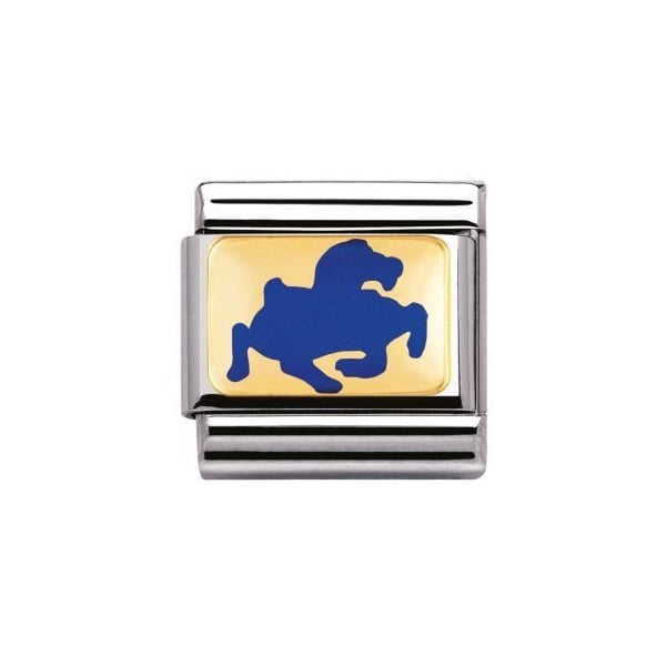 Composable Classic CHINESE ZODIAC in stainless steel with bonded gold and enamel Horse (Blue)