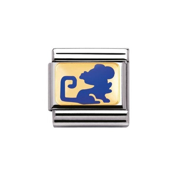 Composable Classic CHINESE ZODIAC in stainless steel with bonded gold and enamel Rat (Blue)