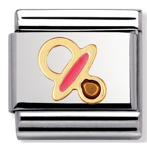 Original Nomination Link for Composable Classic Bracelets in stainless steel and 18K gold with Pink Pacifier symbol.