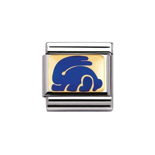 Composable Classic CHINESE ZODIAC in stainless steel with bonded gold and enamel Rabbit (Blue)