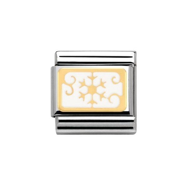 Comp. Classic ENGRAVED CHRISTMAS stainless steel, enamel and bonded gold Snowflake w/white background