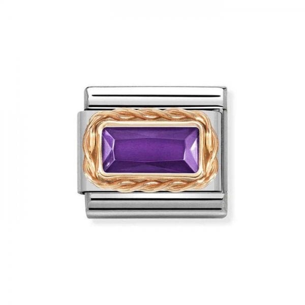 Rose Gold Faceted Baguette Violet Cz Charm