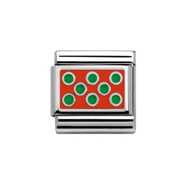 Composable CL PLATES SYMBOLS in stainless steel, 925 sterling silver and enamel GREEN dots ORANGE background