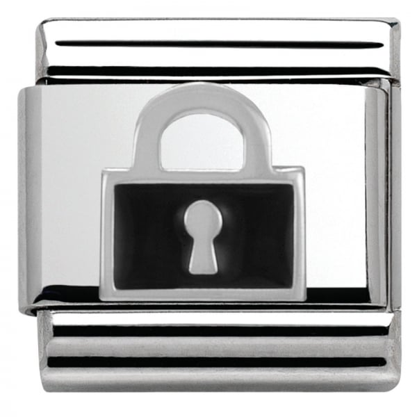 Original Nomination Link for Composable Classic Bracelets Silvershine & Black Enamel Lock.