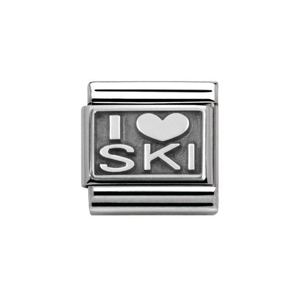 Composable Classic PLATES OXIDIZED steel and 925 sterling silver I love skiing