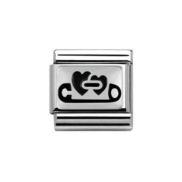 Composable Classic PLATES OXIDIZED steel and 925 sterling silver Safety pin heart