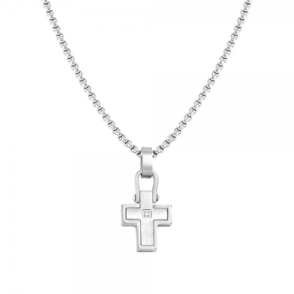 MANVISION necklace in steel and cz (CROSS) WHITE