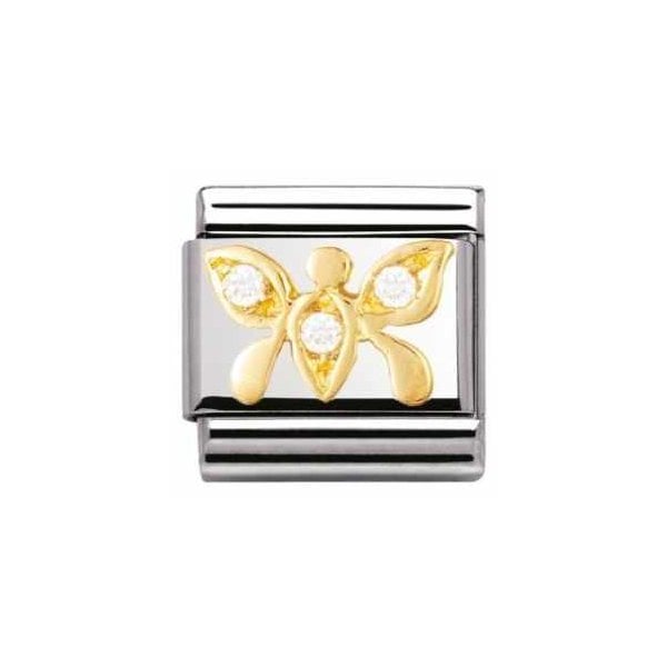 COMPOSABLE Classic AIR ANIMALS In stainless steel with bonded gold and Cubic zirconia WHITE butterfly