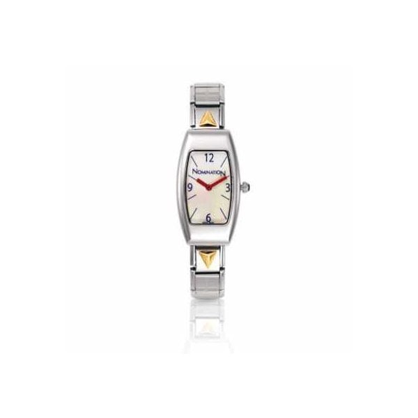 TONNEAU WATCH with stackable bracelet in stainless steel and bonded gold WHITE mother-of-pearl