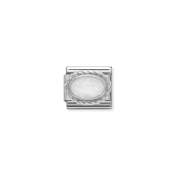 Comp. Classic hard stones stainless steel, rich 925 sterling silver setting WHITE OPAL