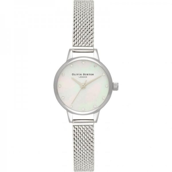 Small, but with a mighty impact, this delicate 23mm mini dial is truly as luxe as they come. A classic mother of pearl face shimmers and shines beneath precision cut crystal markers. Finished in a contemporary silver-toned mesh strap and gleaming case, this little treasure is the perfect piece to elevate your everyday style. Stack with our Mismatch T-Bar bracelet for a flawlessly layered look.