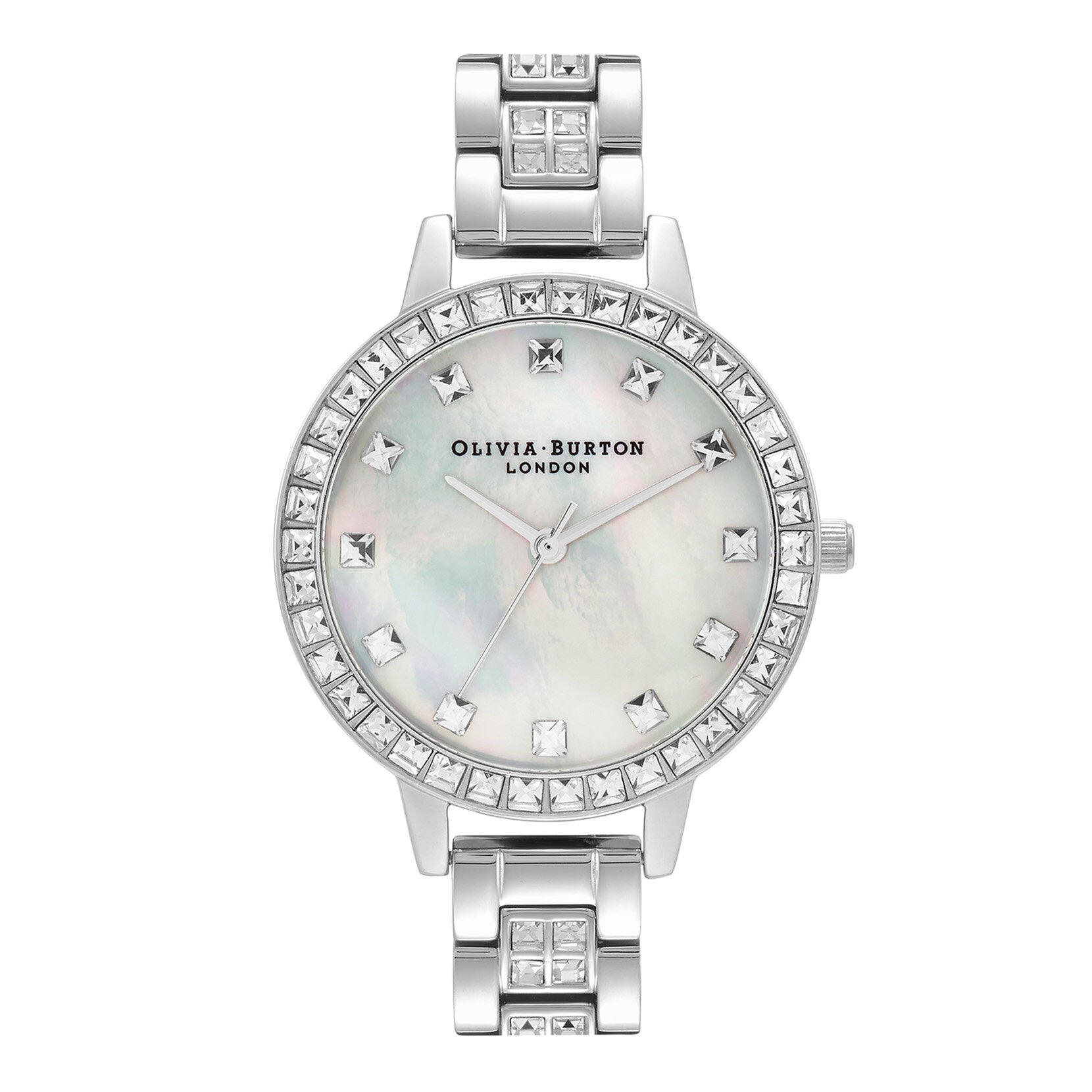 Add a touch of sparkle to your wrist with the Olivia Burton OB16MOP25 Treasure watch. Featuring a shimmering mother-of-pearl dial, delicate crystal hour markers, and a silver-tone stainless steel bracelet adorned with over 70 glittering crystals, this 34 mm quartz watch is both timeless and eye-catching. Finished with 30 m water resistance and a 2‑year warranty, it’s the perfect gift — or a well-deserved treat for yourself.