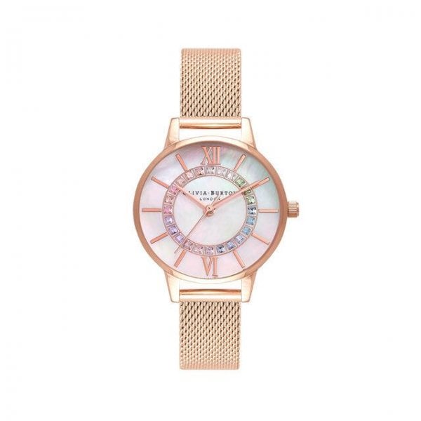 Rainbow Sparkle Wonderland Rose Gold Mesh Watch