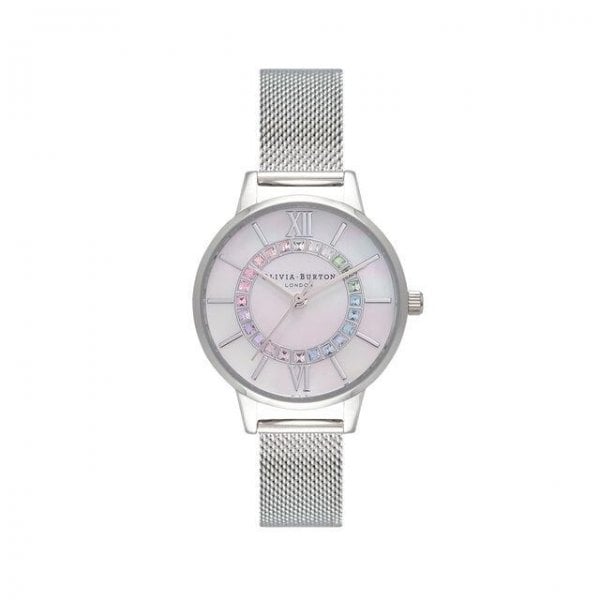 Rainbow Sparkle Wonderland Silver Mesh Watch