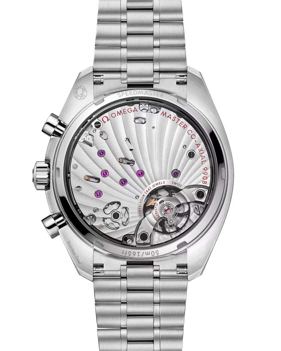 Presented on a stainless steel bracelet, the watch features a silvery small-seconds counter at 9H, and a silvery 60-minute and 12-hour recorder at 3H. Inside, the timepiece is driven by the OMEGA Co-Axial Master Chronometer Calibre 9908.