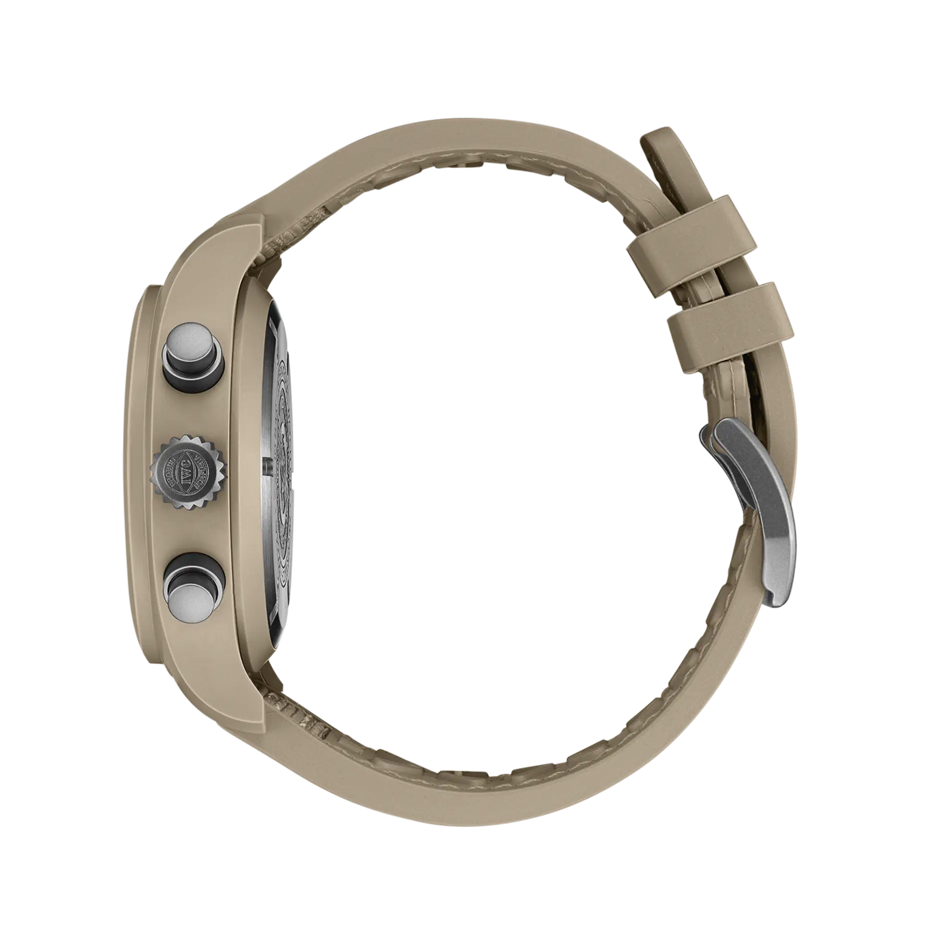The Pilot’s Watch Chronograph 41 TOP GUN Mojave Desert showcases a perfectly proportioned 41mm case crafted from distinctive sand-coloured ceramic, paired with a bold yet understated monochromatic aesthetic. Developed in collaboration with Pantone®, the unique ceramic tone draws inspiration from the flight suits worn by naval aviators and the stark desert terrain surrounding China Lake, home of the U.S. Navy’s renowned TOPGUN flight school.