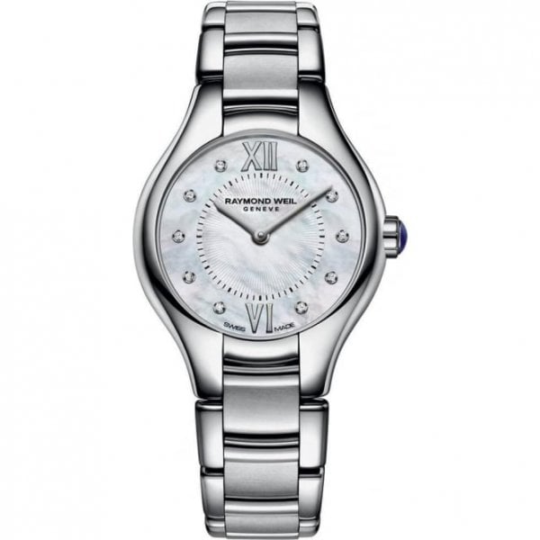 This ladies Raymond Weil watch from the Noemia range features both a stainless steel case and bracelet along with a mother of pearl dial. This watch features 10 diamonds of 0.02ct each and is 50m water resistant. All of our Raymond Weil watches come in an official box with a 2 year warranty.