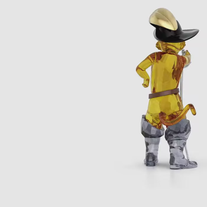 Embark on a whimsical journey to the kingdom of Far Far Away, as Swarovski pays tribute to the iconic film from DreamWorks Animation, Shrek. The collectible series includes this Puss in Boots figurine, which captures the fearless and witty cat in signature detail. Crafted with 296 facets, the design shows the character standing in a confident pose, with his essential hat and boots, and a sword in dark grey lacquered metal. Give your own interior a touch of the swamp, or gift this figurine to a Shrek fan who loves adventure and imagination. Decoration object. Not a toy. Not suitable for children under 15.