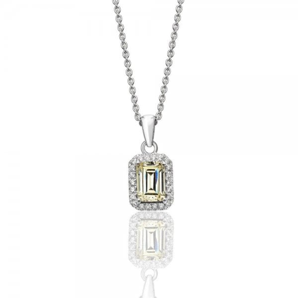 SILVER & CO Silver Bezel Set Oval Halo Style Cubic Zirconia Chain Pendant SPG0019CZ Sterling Silver / Rhodium Plated Code: SPG0019CZ
