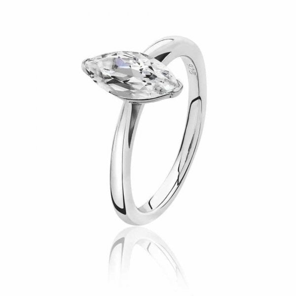 Silver 2 Claw Set Marquise Cubic Zirconia Ring