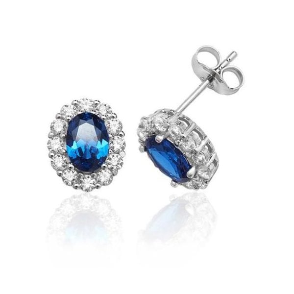 SILVER BLUE & WHITE OVAL CLUSTER CZ STUDS