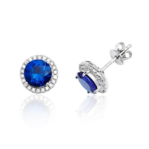 SILVER & CO Silver Claw Set Halo Style Round Blue Stud Earrings